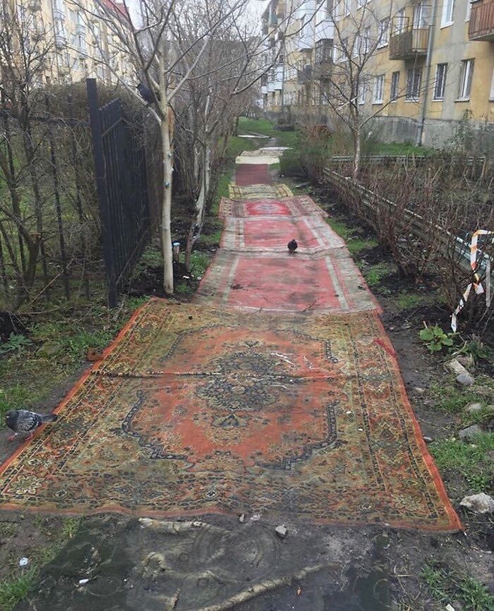 #12 In Certain Places Like Russia, Carpets Are Placed On The Road To Prevent Erosion Slipping On Clay
