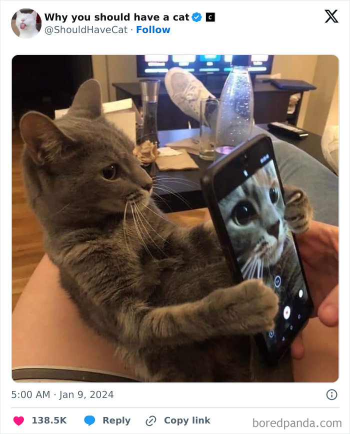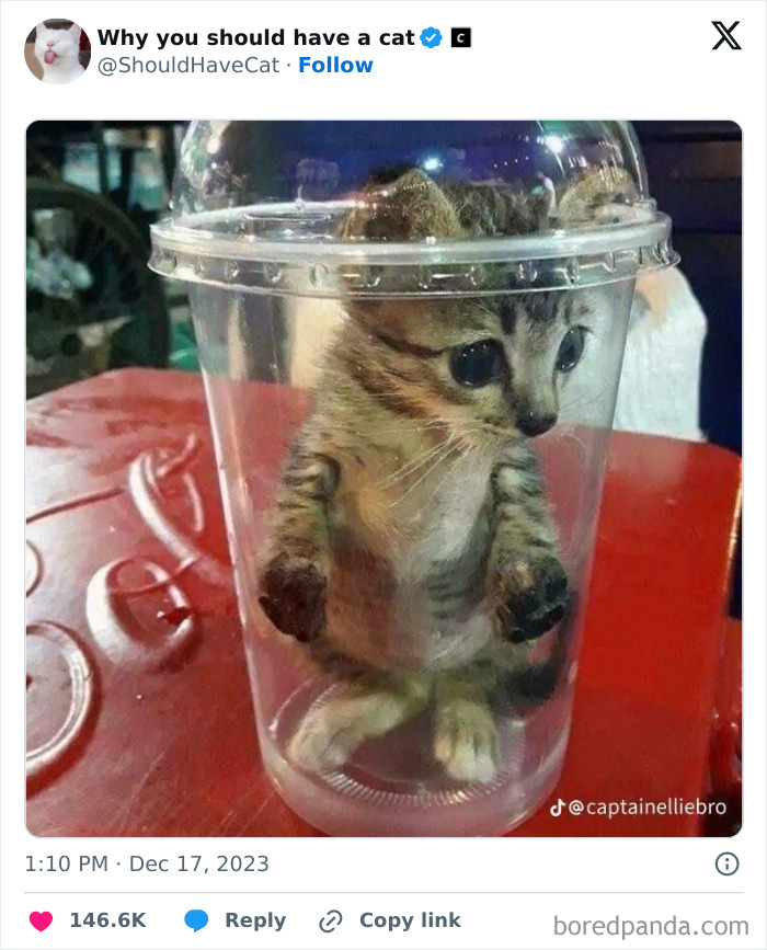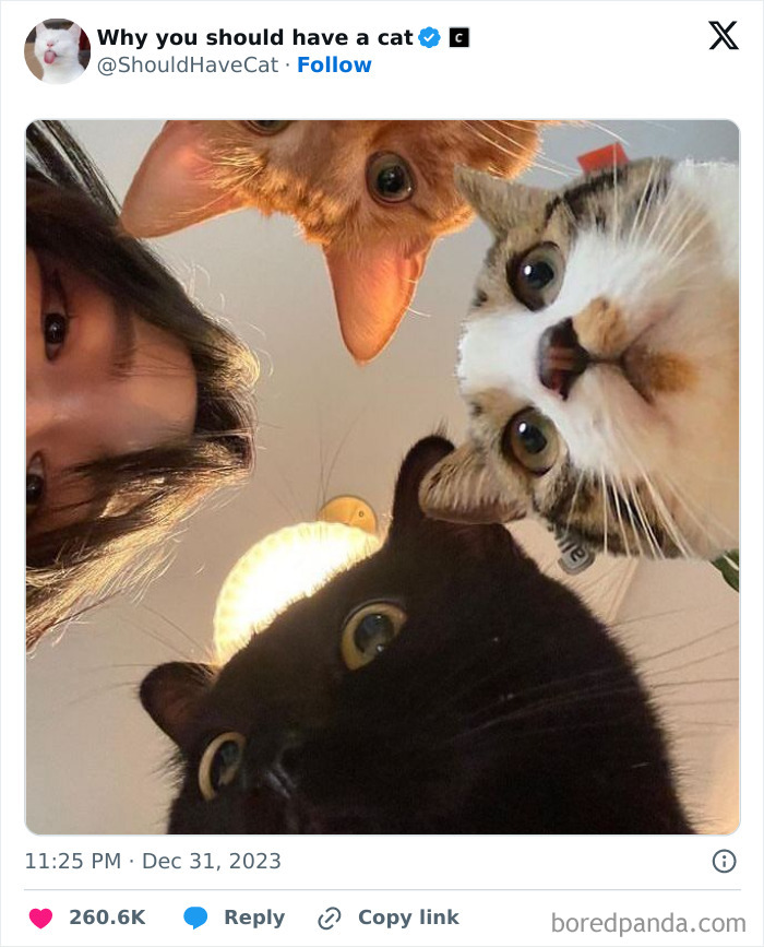 So if you need to be convinced why you should have a kitty, you’ve come to the right place. We’ve gathered some of the most adorable and hilarious photos from Why You Should Have A Cat on X down below, and I have to say, these photos make a pretty convincing argument. Keep reading to find a conversation with cat lover Cathrine, who runs Bionic Basil & The B Team, and be sure to upvote the pics that make you want to adopt a kitty (or another one!).