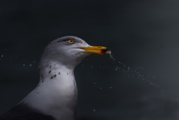 A moody seagull shaking water off itself. I knew I needed to get as close as possible to capture the shot I wanted, so I slowly approached while taking pictures until it finally shook the water off.