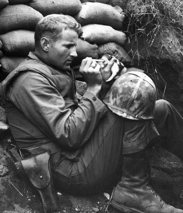 #4 Marine Sergeant Frank Praytor Feeds A Two Week Old Orphan Kitten