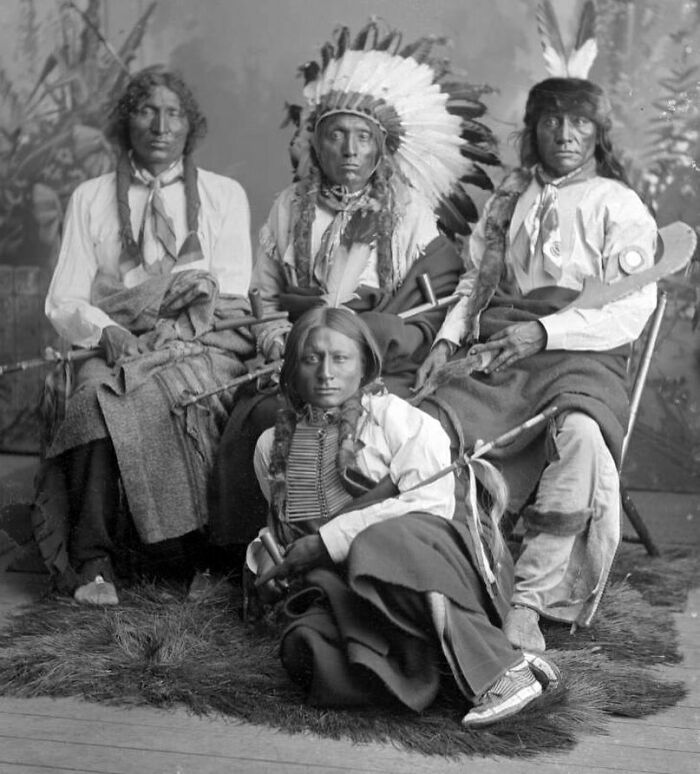 #32 Iron Thunder, Crow Eagle, Fool Thunder, Slow White Buffalo, All Holding Peace Pipes, Dakota, Circa 1880s