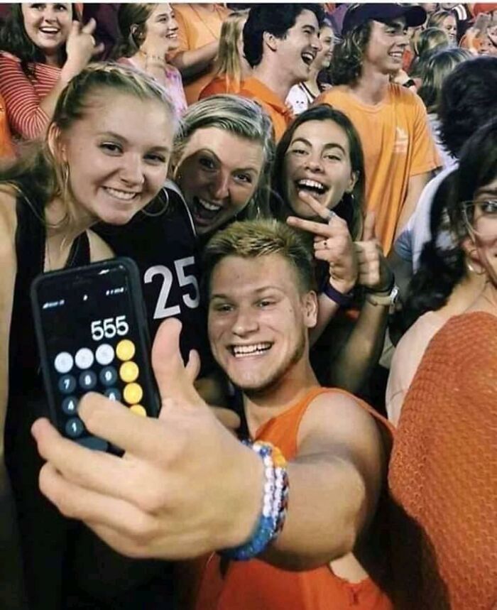 What we can know is its content: pictures that range from mildly unusual to outright bizarre. On the one end, we have pics of folks projecting a movie onto a cow because of course a tree isn’t gonna cut it and this lad trolling a trio of ladies who think they’re all taking a selfie, but he’s just tapping the 5 key to simulate a button press.