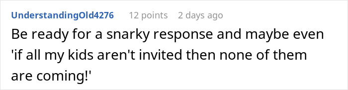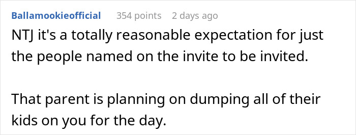 She also wondered whether it is standard practice for parents to expect that all their children would be invited to parties