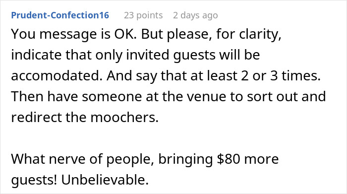 After crafting a reasonable RSVP message, she began feeling guilty, so much so that she turned to the Reddit community for some validation.
