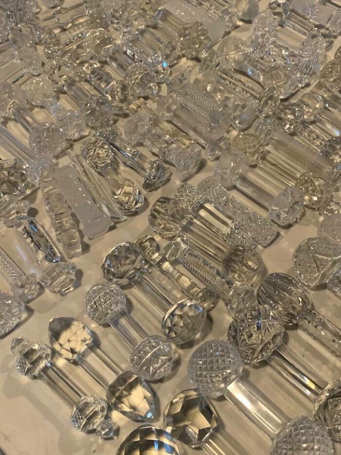 #35 Glass Items Seen At Yard Sale. They Aren’t Doorknobs And Some Look Like One Solid Piece?