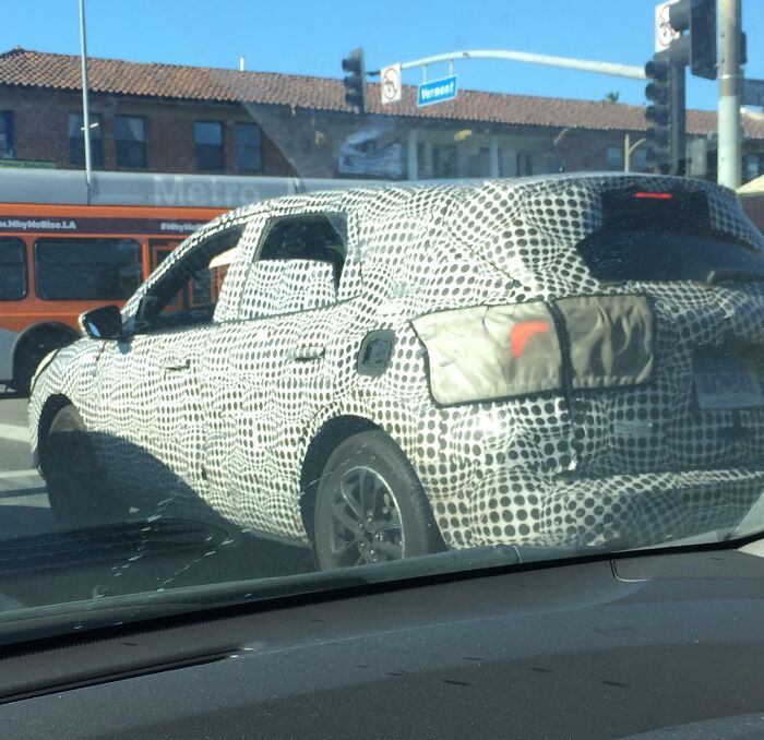 Answer: It obscures the car while being test driven, so the yet-to-be-released models are not photographed and published. The random “wave” patterns effectively hide the body contours and lines.