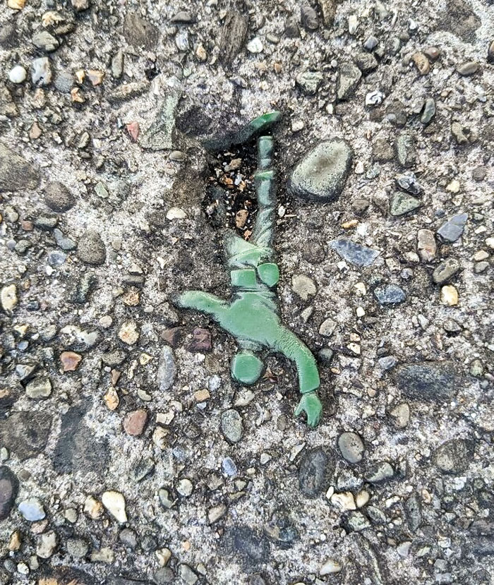 #13 Today On My Walk I Found An “Army Man” Embedded In The Sidewalk