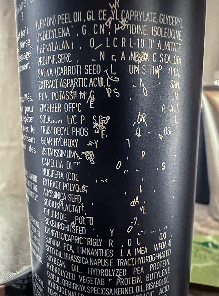 #42 The Way The Sticker On This Shampoo Bottle Has Worn Looks Like A Letter Tornado