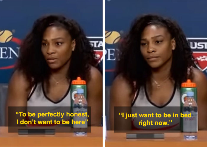 But expecting athletes to act cheerful during these moments just crosses the line. In 2015, a reporter asked Serena why she wasn’t smiling during a post-game press conference after beating her sister Venus.
